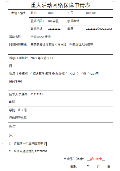1. 服务名称:校园重大活动网络保障申请