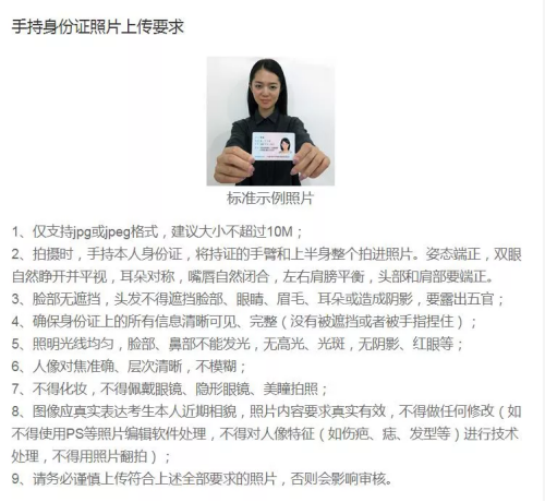 所有证件都需原件拍照,对考生提供的无法清晰、准确辨识的照片,考生须按提示重新提交。
