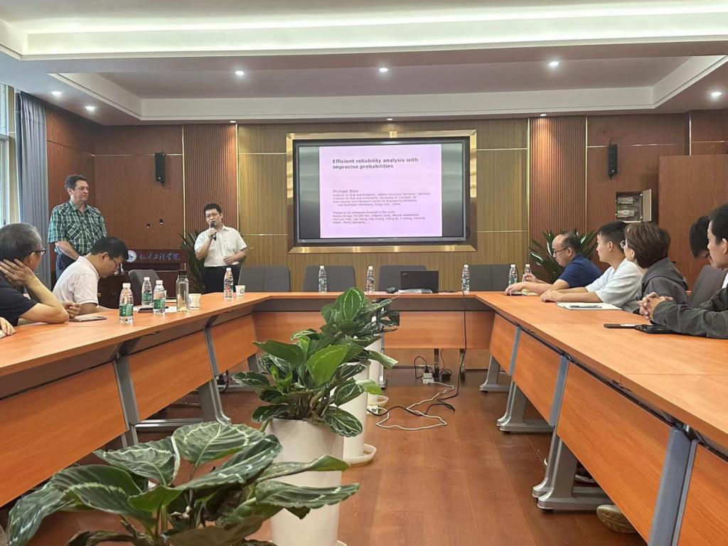 2023年10月1日上午,土木工程学院研究生博力学术论坛之大师引领系列讲座继续在云塘校区工科二号楼A304学术报告中心举行。德国汉诺威莱布尼茨大学(Leibniz Universit?t Hannover)风险与可靠性研究所所长Michael Beer教授受邀为师生们做了题为“Efficient reliability analysis with imprecise probabilities”的学术报告。报告会由土木工程学院张振浩教授主持,彭建新教授、夏桂云教授等教师以及40余位研究生参加了本次学术交流。