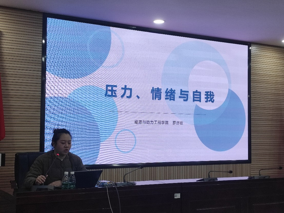 罗亦欧首先以“压力、情绪与自我”为主题,分别从研究生心理健康状况、压力与心理健康、情绪管理三个方面进行详细讲解。通过学校2024年秋季研究生思想状况调研报告与研究生心理健康的相关论文中的数据,分析了当前社会研究生的心理健康状况;然后通过引入案例,解读了压力是什么及苦难教育给我们带来的压力,分析了长期压力的影响及应对压力的步骤;接下来讲述了如何认识、觉察情绪,通过引入一些情景模拟,穿插讲述了研究生如何缓解自己的情绪、自查心理状态。最后,她为研究生提供了心理咨询的渠道,推荐了经典书籍和电影供同学们课后阅读和观影。