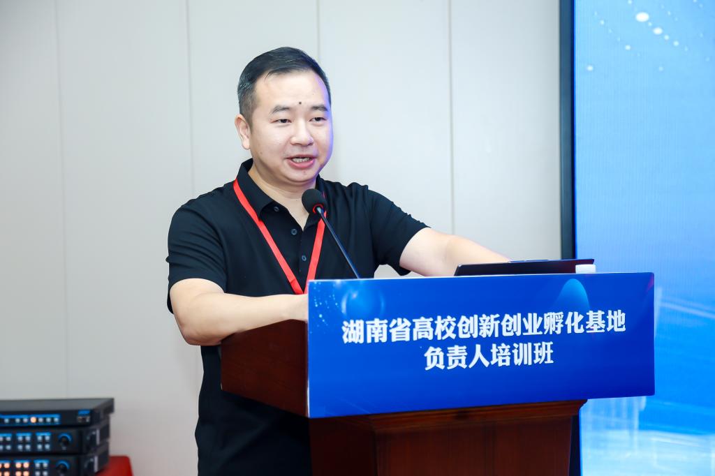 省教育厅学生处副处长陈衡在开班仪式上发言,他全面介绍了我省高校创新创业孵化基地的建设背景、发展现状与未来重点任务,他指出,近年来我省高校孵化基地建设取得积极进展,但也面临发展不平衡、服务内容同质化、可持续发展能力偏弱、专业队伍支撑不足等挑战。他强调,各高校要深入贯彻落实省委、省政府关于支持大学生创新创业的部署要求,紧紧围绕“提质增效”目标,提升高校孵化基地专业化运营能力,推动孵化基地高质量发展。
